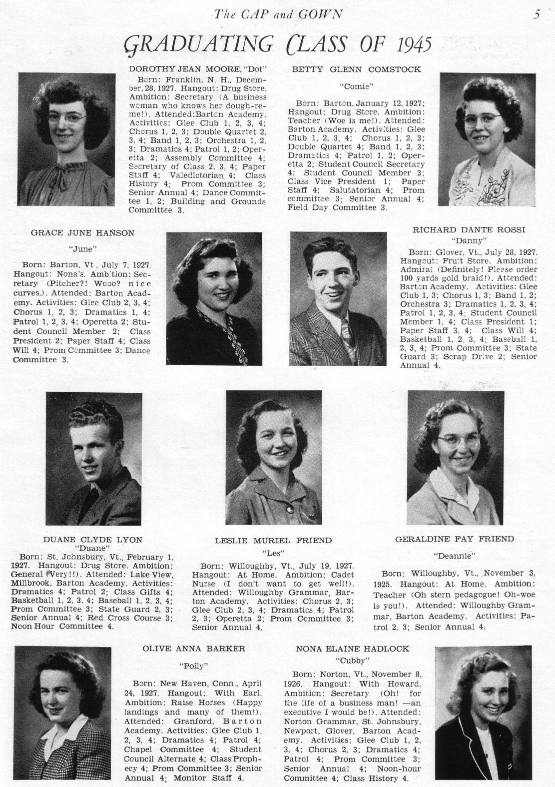 1945 List of 1945 Students with pictures