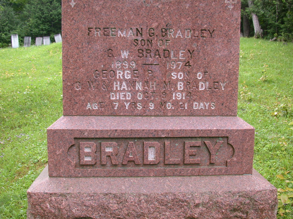 Age 17 yrs 9 mo 21 days Son of G.W. & Hannah M. Bradley |