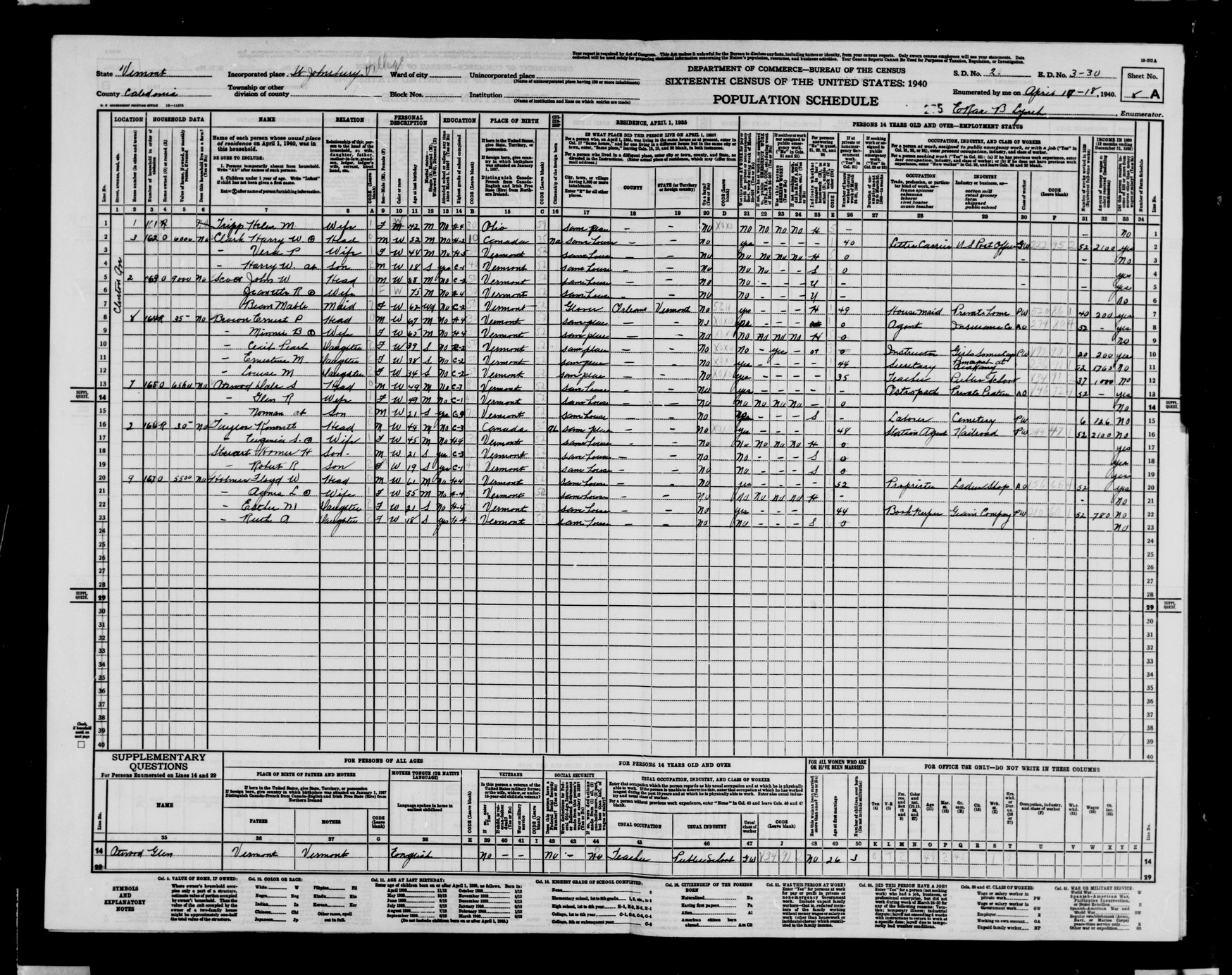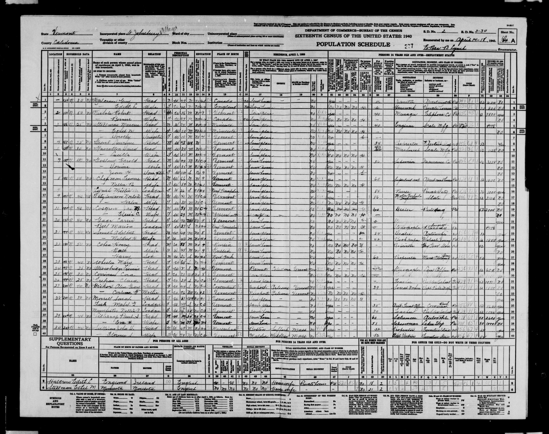Census Page VT.3-31-30 |
